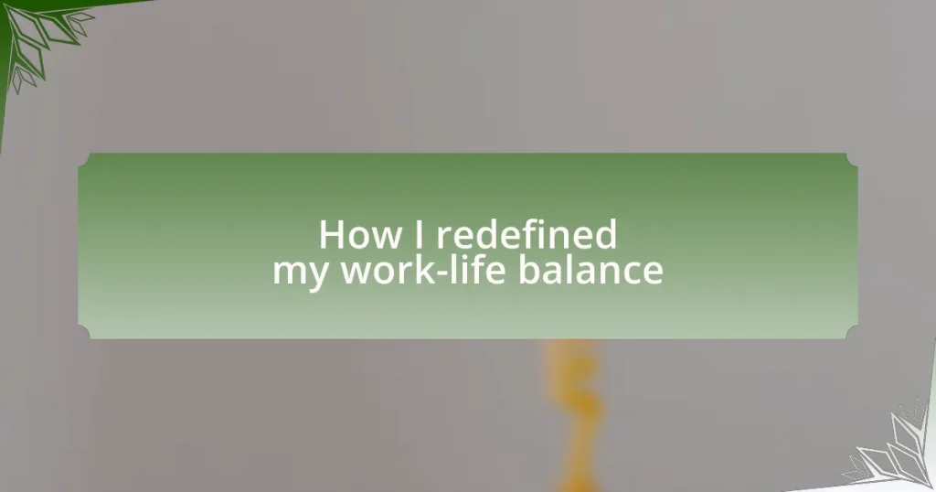 Balancing work and life is not just about time management; it involves setting boundaries and nurturing your well-being. For instance, I set specific work hours and dedicated evenings to family meals or personal hobbies. This practice not only eased my stress but also contributed to a more joyful and productive approach when I returned to my baking. How do you envision your life when you embrace that balance? Exploring these questions can pave the way for meaningful conversations about your needs.